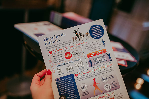 Työpaikat tukevat henkilöstöliikuntaa ja rahaakin käytetään keskimäärin 266 euroa vuodessa henkeä kohden eli yhteensä noin 400 miljoonaa euroa. Siksi hieman yllättävää onkin, että 39% työpaikoista ei seuraa investoinnin vaikuttavuutta ja kohdentuvuutta mitenkään. Kuitenkin sekä kroppa että nuppi tutkitusti hyötyvät liikkeen lisääntyessä ja istumisen vähentyessä, joten asiaa ei kannata kuitata vain henkilöstöetuna tai satunnaisilla tempauksilla. Myös henkilöstöliikunnasta saadaan oiva työkalu kohti tuottavaa, kestävää ja osallistavaa työtä, kunhan sitä vain tehdään pitkäjänteisesti ja suunnitelmallisesti, osana laajempaa työkyvyn ja -hyvinvoinnin johtamista.