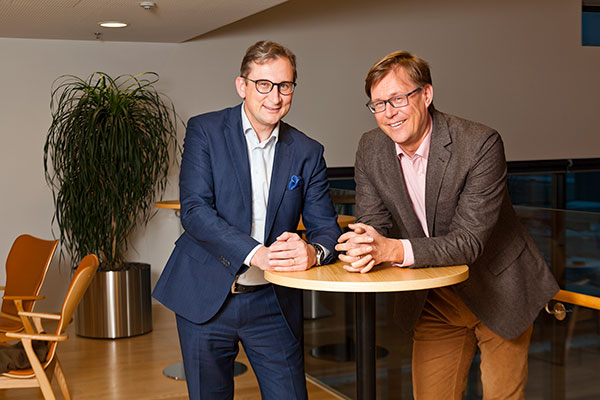 Varman asiakkuuksista vastaava varatoimitusjohtaja Ville-Veikko Laukkanen vasemmalla ja Terveystalon toimitusjohtaja Yrjö Närhinen näkevät, että avainasemassa suomalaisessa yrityskentässä on – nyt ja tulevaisuudessa – henkilöstön osaaminen ja organisaation suorituskyky sekä kyky oppia ja mukautua muuttuviin tilanteisiin.